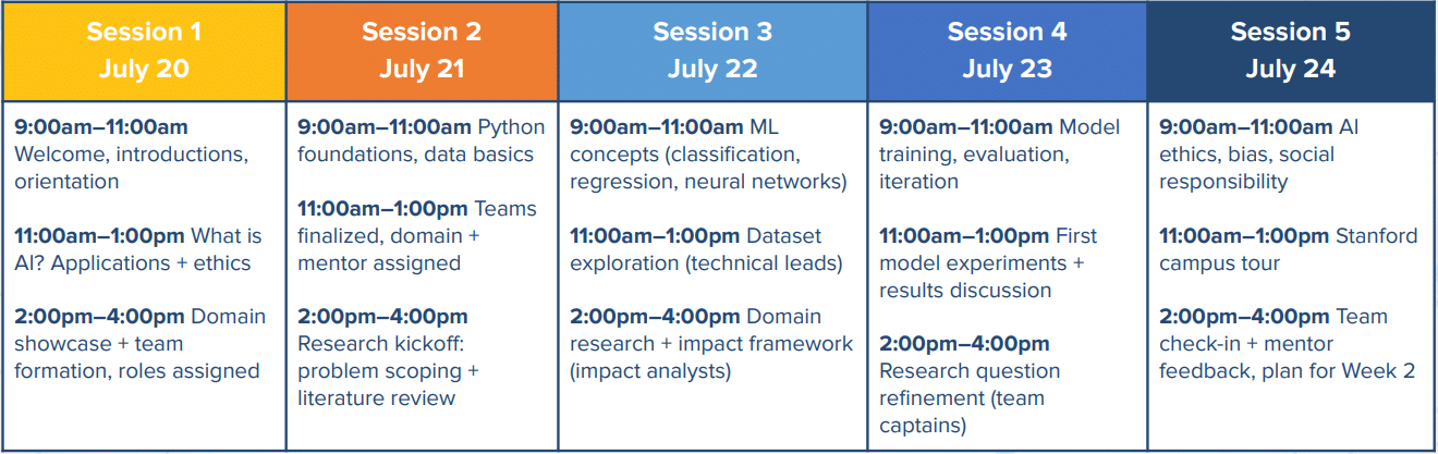 The AI Impact Challenge is a 2-week, full-day, in-person program at the Inspirit AI Hub in Palo Alto.